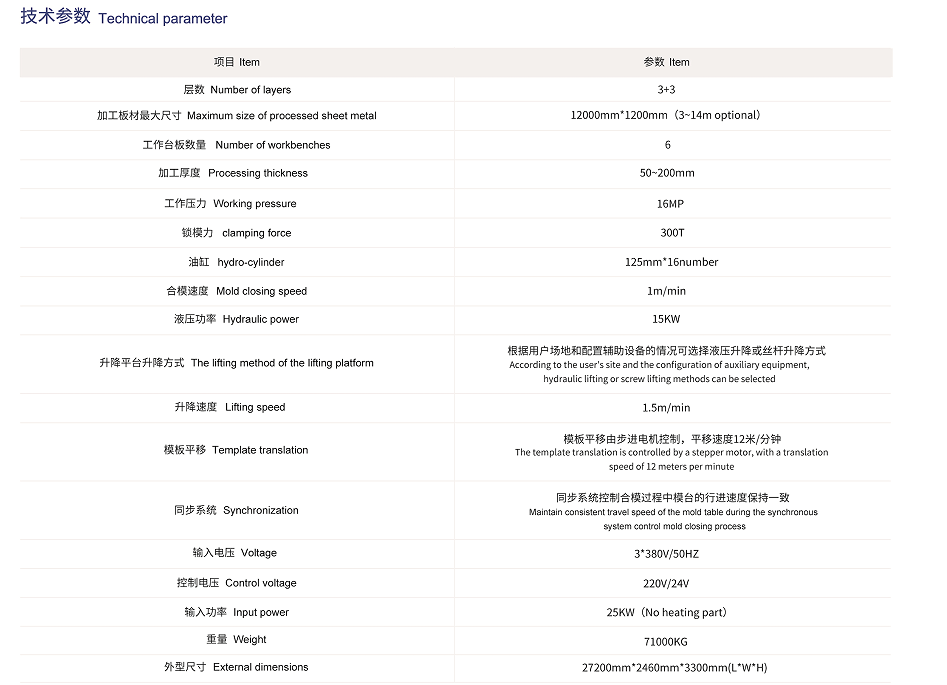 二是自動(dòng)升降平臺,她的作用是從打開的層壓機(jī)工作區(qū)中將完成工作的模板取出,然后下降到適合工作的高度,再有人工或機(jī)械手將保溫板取出,然后進(jìn)行鋪裝工作,再將準(zhǔn)備好的模板送入層壓機(jī),然后在取出下一塊模板,直至將三塊模板都完成工作。